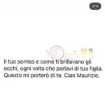 Non avrei mai potuto immaginare una vita senza te… invece eccomi qui, a vivere per te. Ricordo ogni parola come se fosse ieri. Mi hai salutata con cura, con il tuo solito sorriso e gli occhi pieni d’amore. Mi hai sempre augurato una vita felice, un lavoro che mi potesse dare tante soddisfazioni, e un uomo accanto buono come te, che mi amasse come tu hai fatto con mamma, per rendermi la vita più leggera. Io sono qui cercando di costruire tutto questo come ti avevo promesso. Spero di renderti fiero e orgoglioso di me. La tua voce mi manca tantissimo, così come i tuoi piccoli gesti quotidiani che rendevano la nostra famiglia più unita. Il tuo carattere spigoloso e unico illuminava ogni cena che condividevamo. La tua premura e la tua sensibilità mi hanno aiutata a crescere con un cuore buono e umile.La malattia è arrivata all’improvviso e ha distrutto tutto. Ricordo quei giorni come un incubo. Sapere che stavo per perderti e contare i giorni per salutarti è stata la cosa più straziante. Ti tenevo la mano e ti stringevo a me, pensando che non avrei mai voluto perderti, non avrei mai voluto salutarti per l’ultima volta.