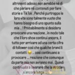“Certa gente dovrebbe ringraziare di avermi avuta nella propria vita, altrimenti adesso non avrebbe né di che parlare né contenuti per fare storie e TikTok. Perché purtroppo le loro vite sono talmente vuote che hanno bisogno di uno spunto sulla mia! Probabilmente si desidera provocare una reazione, in modo tale che il loro show continui ancora, il tutto per arrivare a una certa cifra di follower così che qualche brand li contatti… così continuano a provocare… reazione che comunque da parte mia non avranno mai. Quindi continuate a lavorare, che la strada è ancora lunga…”