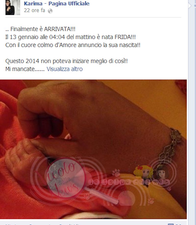Karima Ammar è diventata mamma della piccola Frida by pitylacapessa in Ex Artisti dei Talent il 26/01/2014 21:56 - 12 Repliche Tweet Leggi anche...Ex allievo di Amici svela alcuni retroscen...il 22/11/2025 17:37Ex di Amici fa un feat con un'ex cantante ...il 20/05/2025 10:16Amici, vincitrice convola a nozze con un b...il 30/07/2024 09:18Ex allieva di Amici ha annunciato la terz...il 19/03/2024 23:23