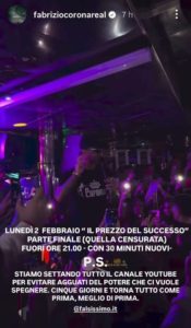 “Mi hanno cancellato l’ultimo episodio, ma non è che sto fermo, ci saranno altre cose e presto. Volete sapere cosa? Lunedì prossimo ripubblico anche la parte in abbonamento e sarà gratis questa volta, ma non è finita qui. Aggiungo venti minuti di puntata dove ci saranno altre cose, anche una cosa su Signorini e Medugno“.