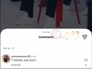 Andrea sembra riferirsi alle liti sopra descritte. Ma perchè fare un commento così, dal nulla? I due forse si conoscono e voleva solo essere goliardico? Segue il programma e ha voluto commentare ironicamente? Si sa solo che dopo poco il commento è scomparso, ma le talpine avevano già salvato lo screenshot.