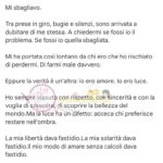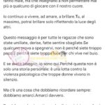 Ha concluso il lungo messaggio rivolgendosi alle donne vittime di violenza psicologica, invitandole ad amarsi e a proteggersi.