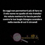 Ma Dalila aggiunge pure che l’ex cognata, mentre si frequentava ormai apertamente con Nunzio, ai primi di dicembre è stata di nuovo “ insieme” a suo fratello, dunque col piede in due scarpe !! Per Dalila lo schifo principale resta comunque il pensiero che, mentre a lei asportavano sangue dal polmone a causa dell’incidente, nella stanza accanto Nunzio ed Eleonora si baciavano senza vergogna!